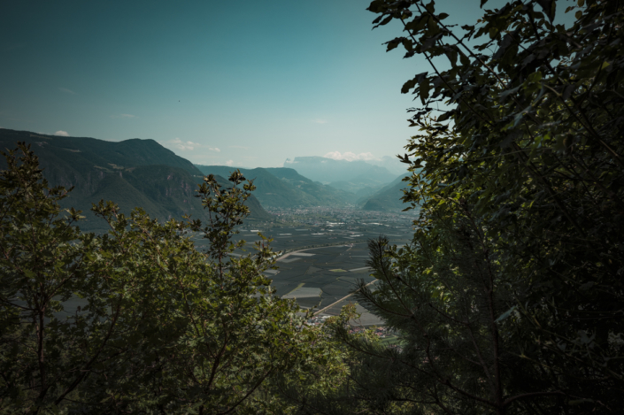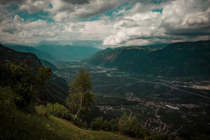 Etschtal mit Blick Richtung Bozen und dem Rosengarten